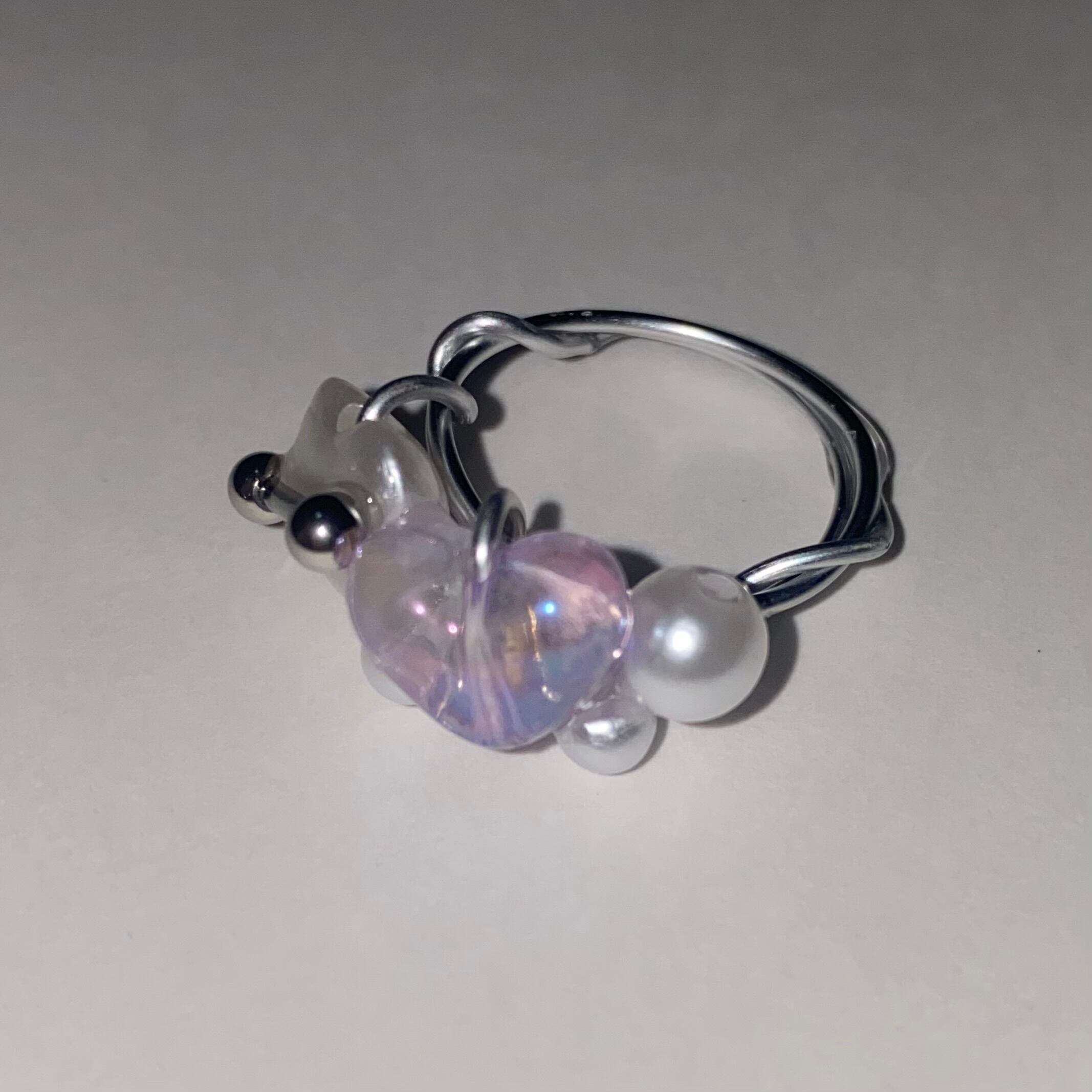 2種類のハートが可愛らしく、ピアスのパーツがポイントになっているリングです。