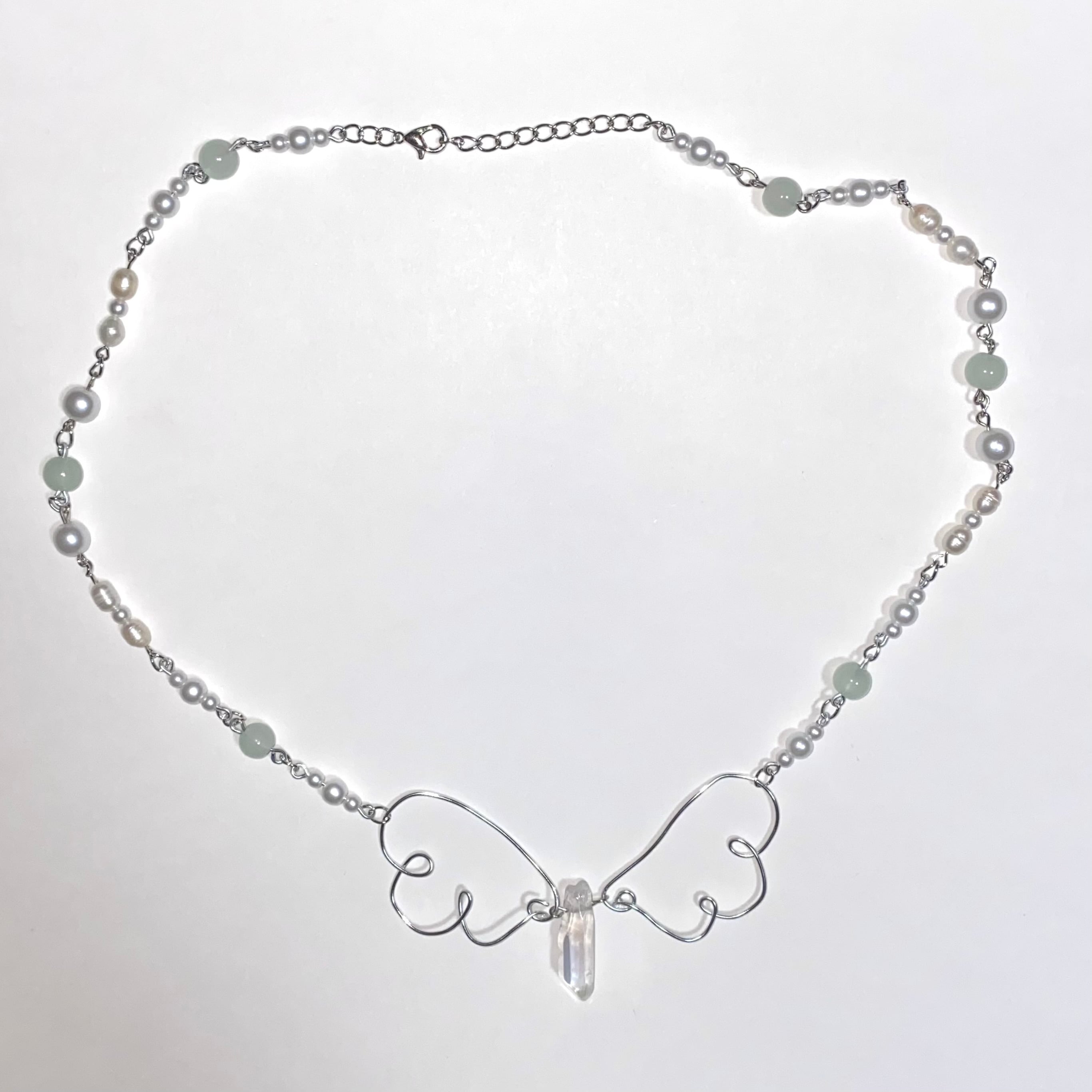 天使のパーツと淡水パールが可愛らしいネックレスです。