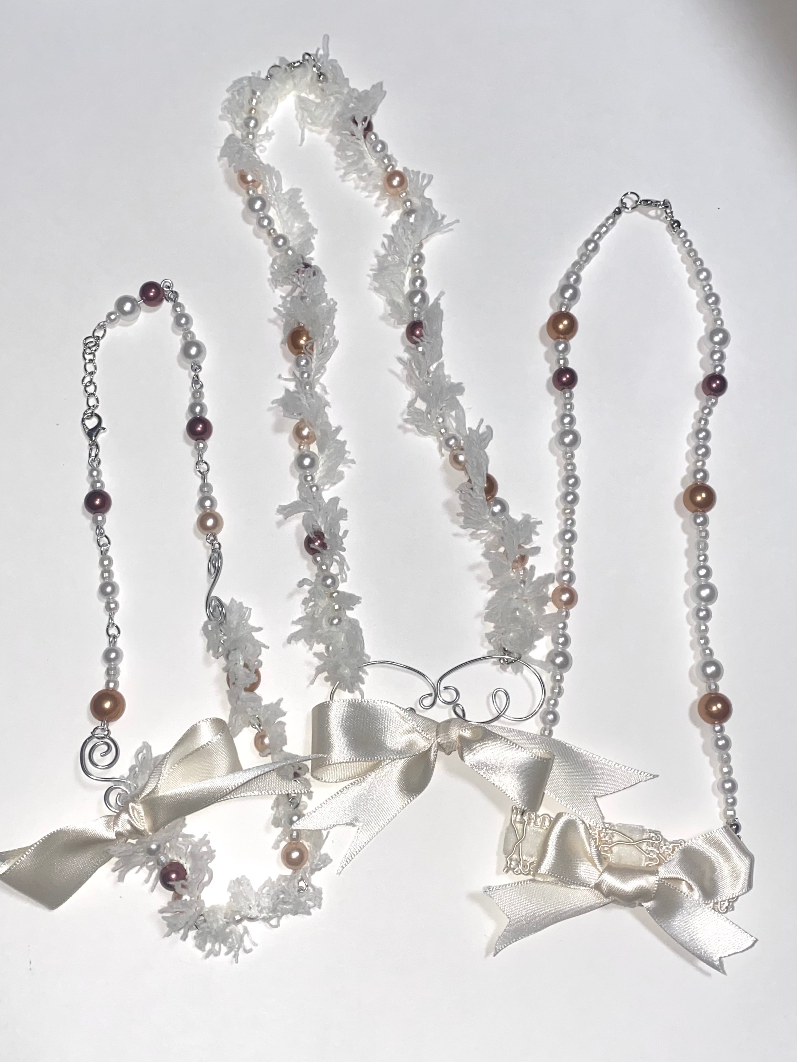 縦 21cm ベージュのリボンが可愛らしい優しい雰囲気のネックレスです。 ご購入される際は、特定商取引法に基づく表記「運営に関する情報」をご一読ください。