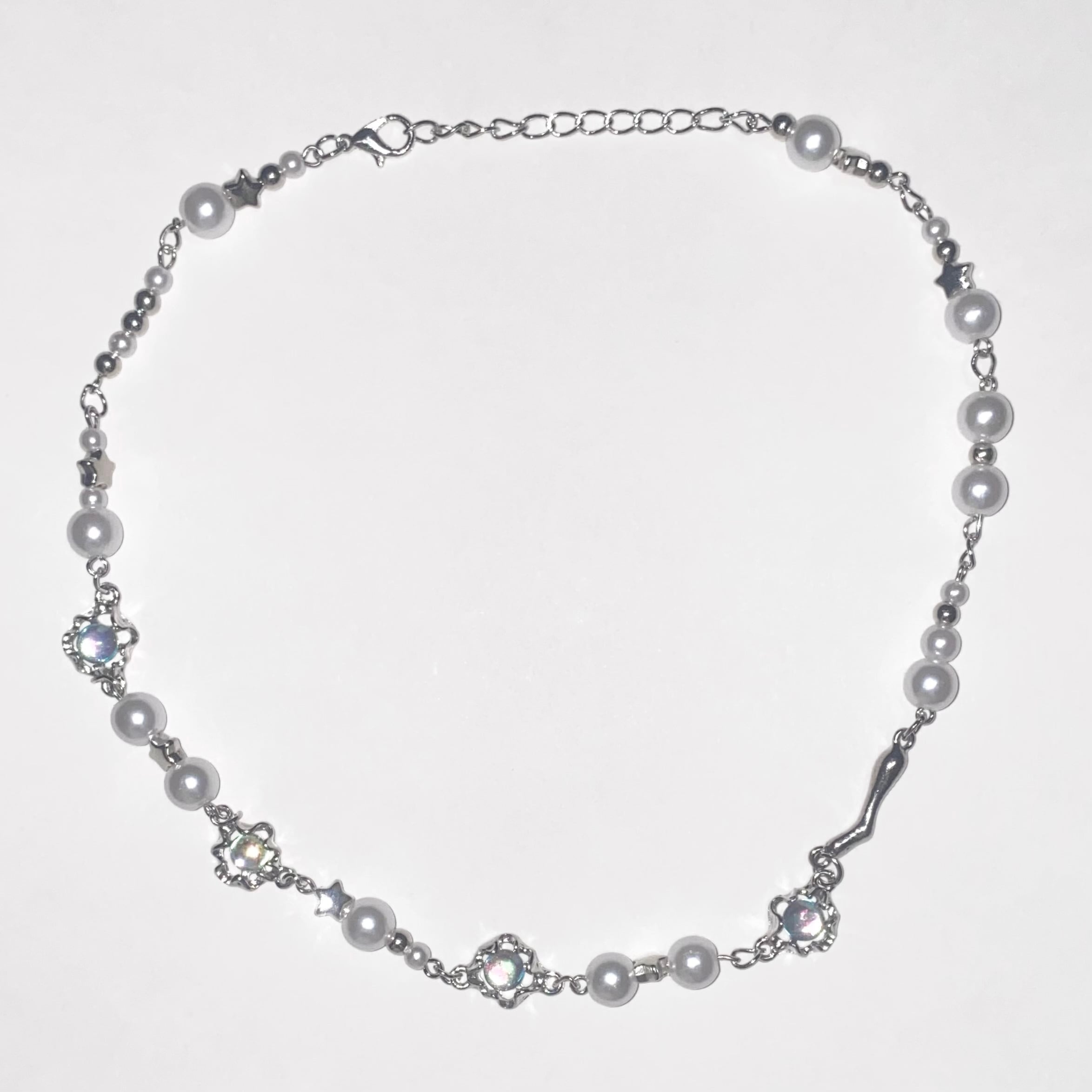 星とシルバーの色合いが可愛らしい宇宙のような雰囲気のネックレスです。