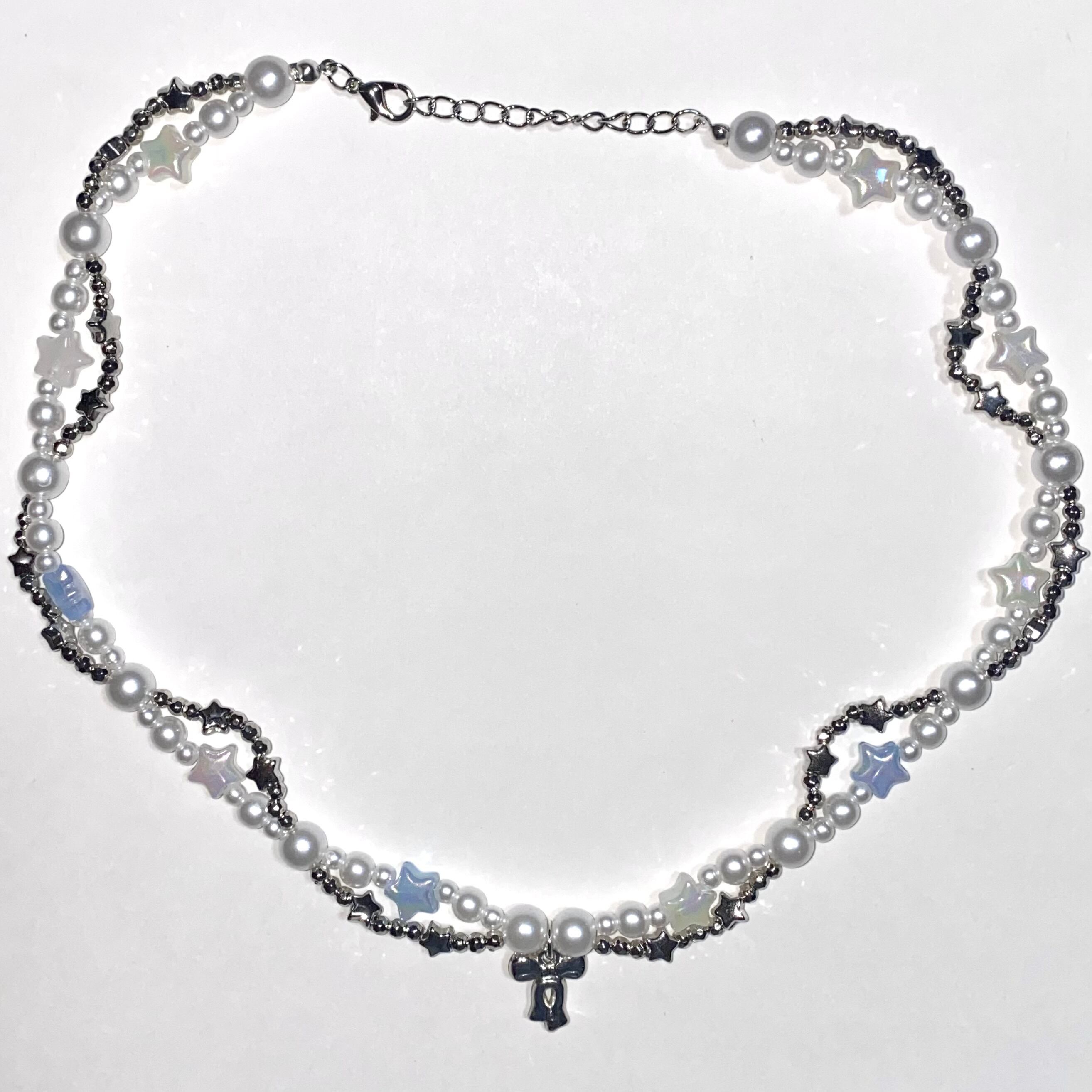 水色と白の色合いが素敵な星の可愛らしいネックレスです⭐︎