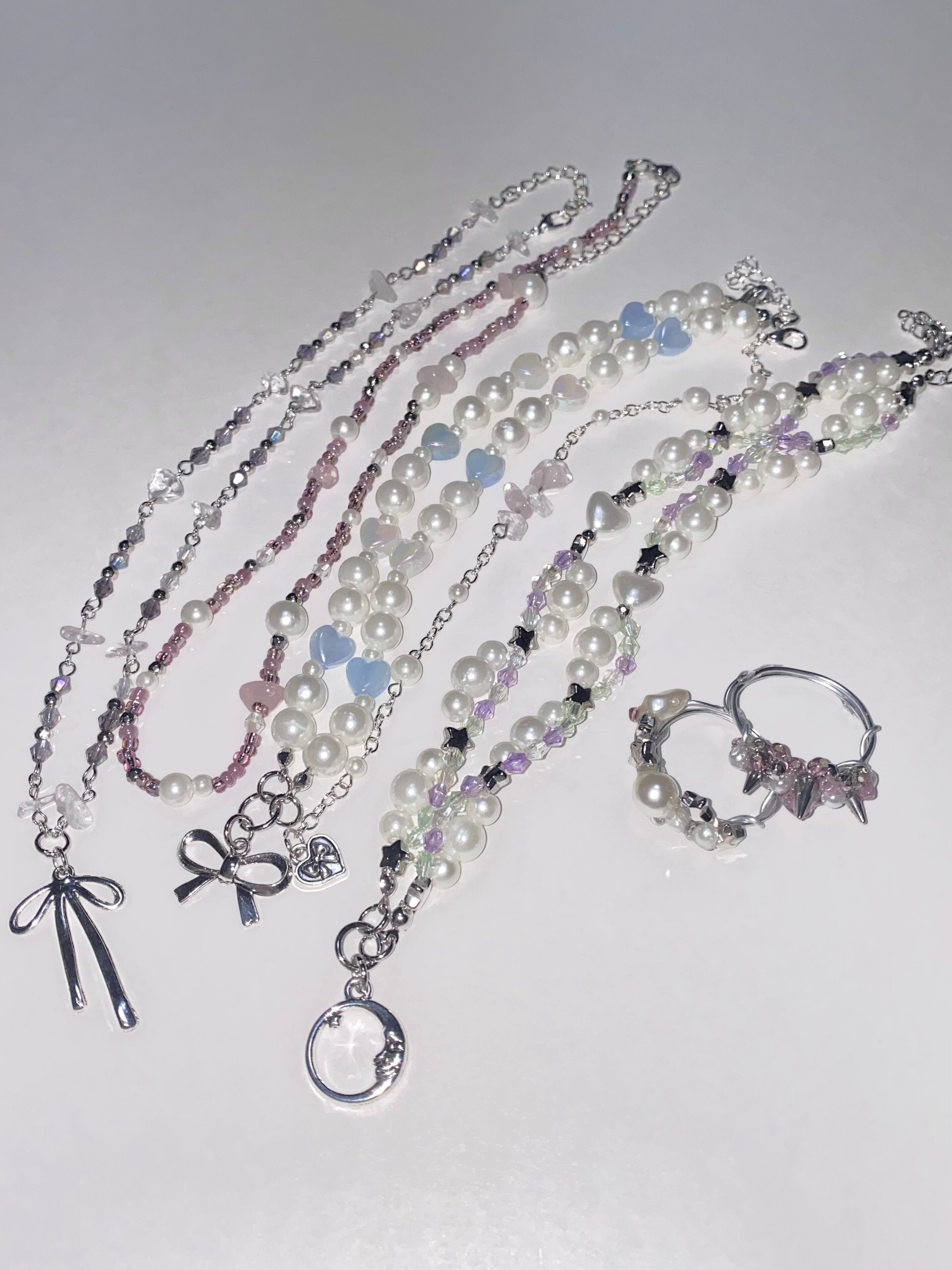 透明感のあるビーズが大人っぽく素敵なネックレスです。