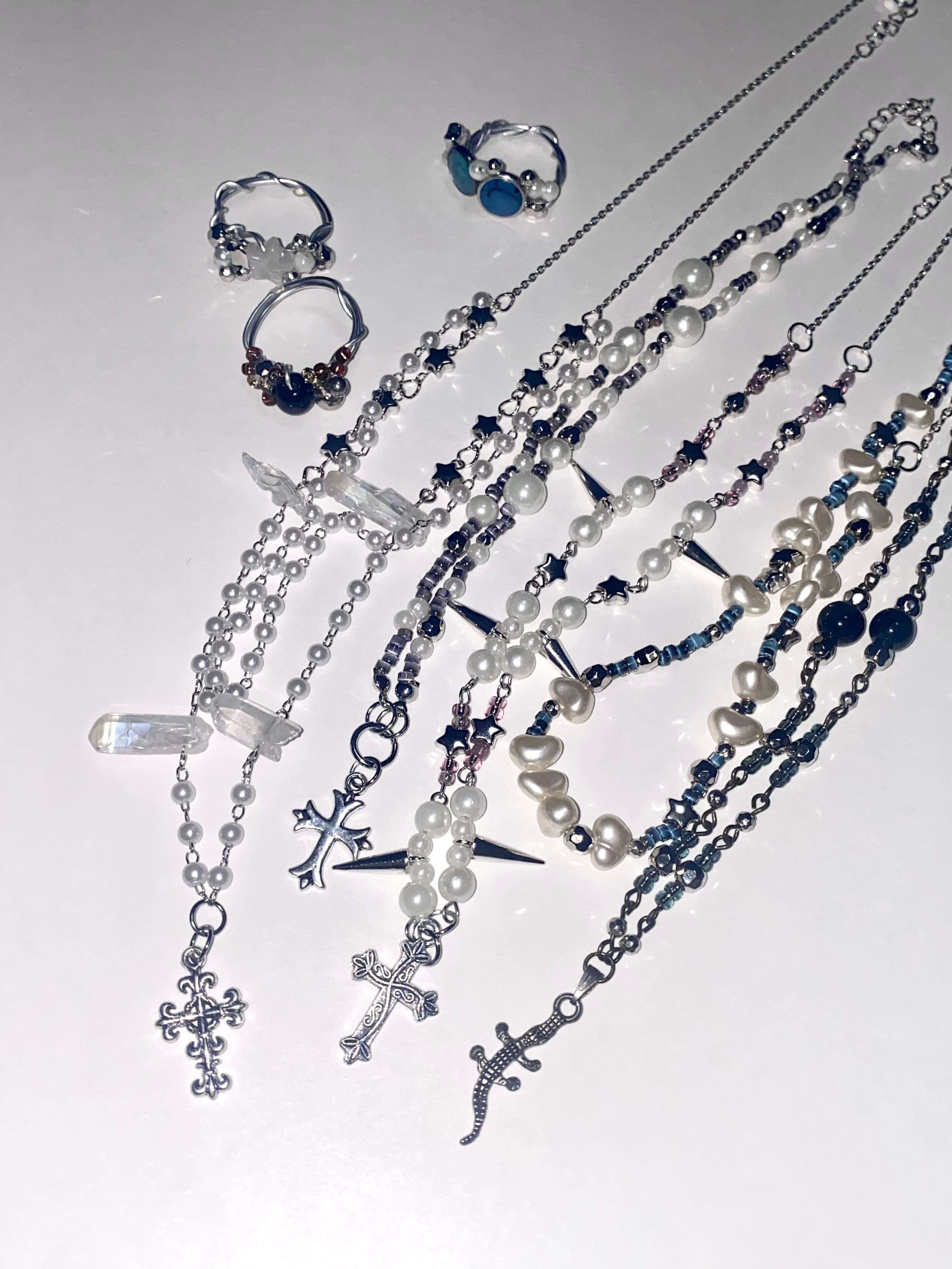 ワニのパーツとグリーンのビーズが可愛くも大人っぽい素敵なネックレスです。